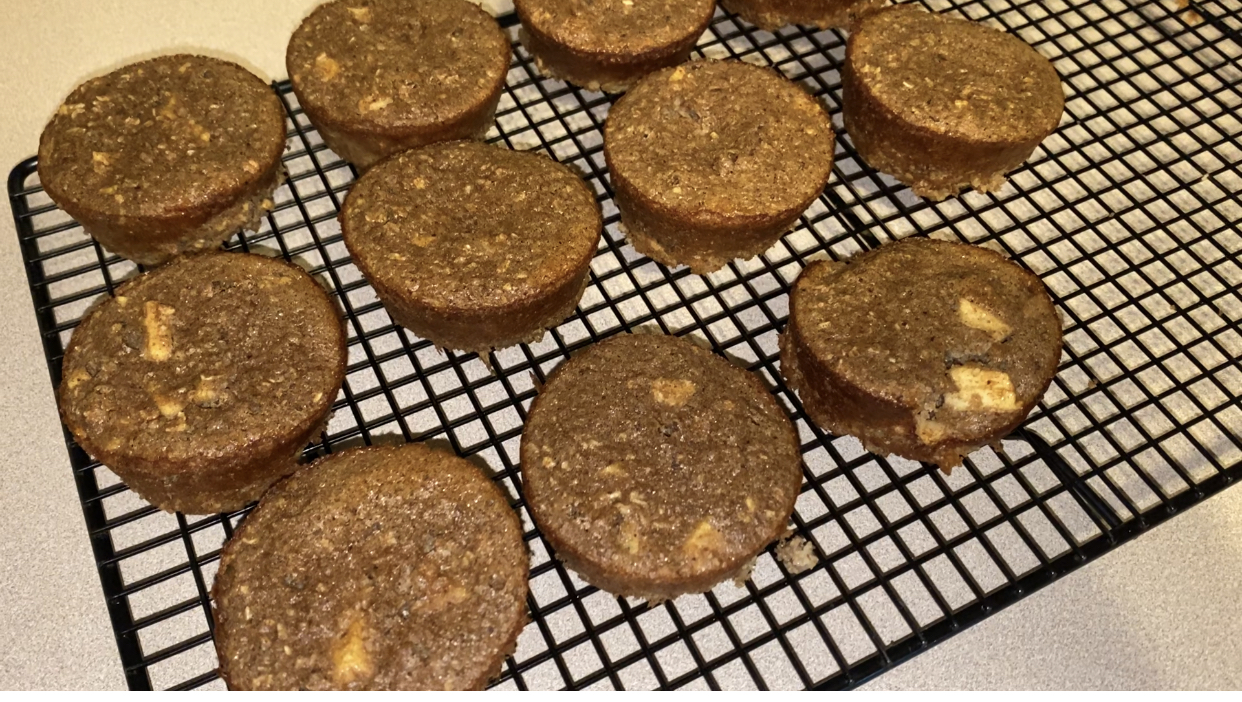 - Spray a regular size muffin pan with non stick spray. I do not recommend using paper liners – the muffins will stick to the liner.