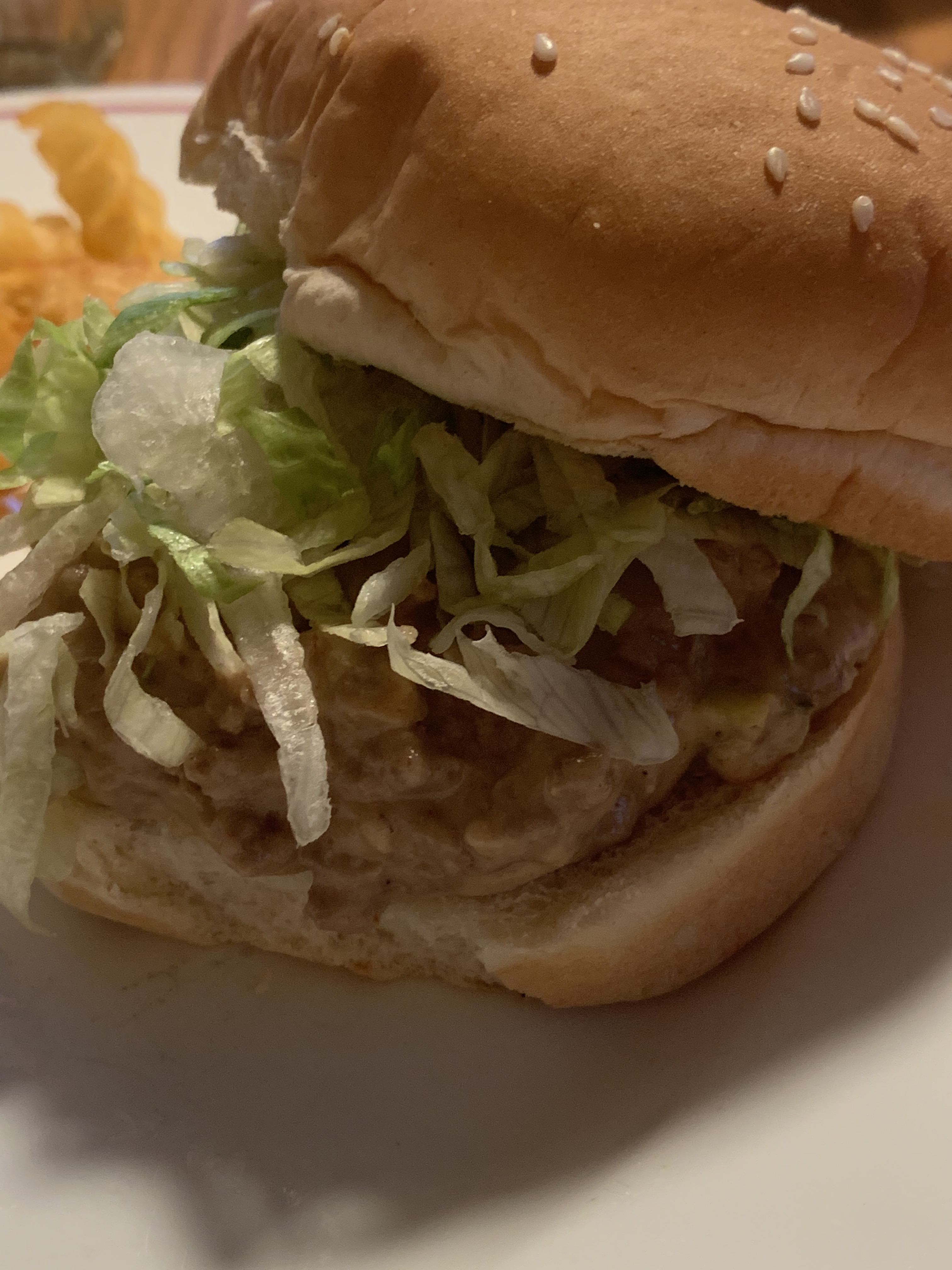 Add the mayo, Thousand Island Dressing, salt and pepper to the pan. Stir well until all the ground beef is coated.
