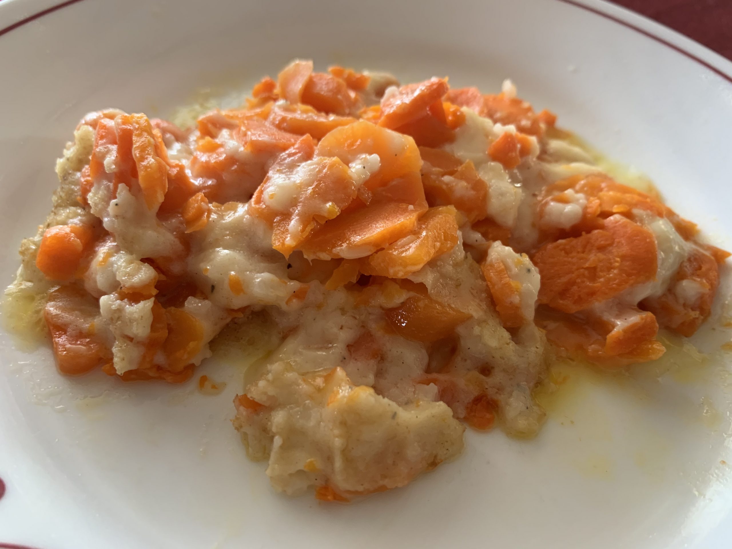 - In a casserole, layer 1/3 of the cooked carrots, ½ of the cheese, 1/3 of the sauce, then repeat, 1/3 carrots, remaining cheese, 1/3 sauce, remaining carrots and remaining sauce. Sprinkle on breadcrumbs.