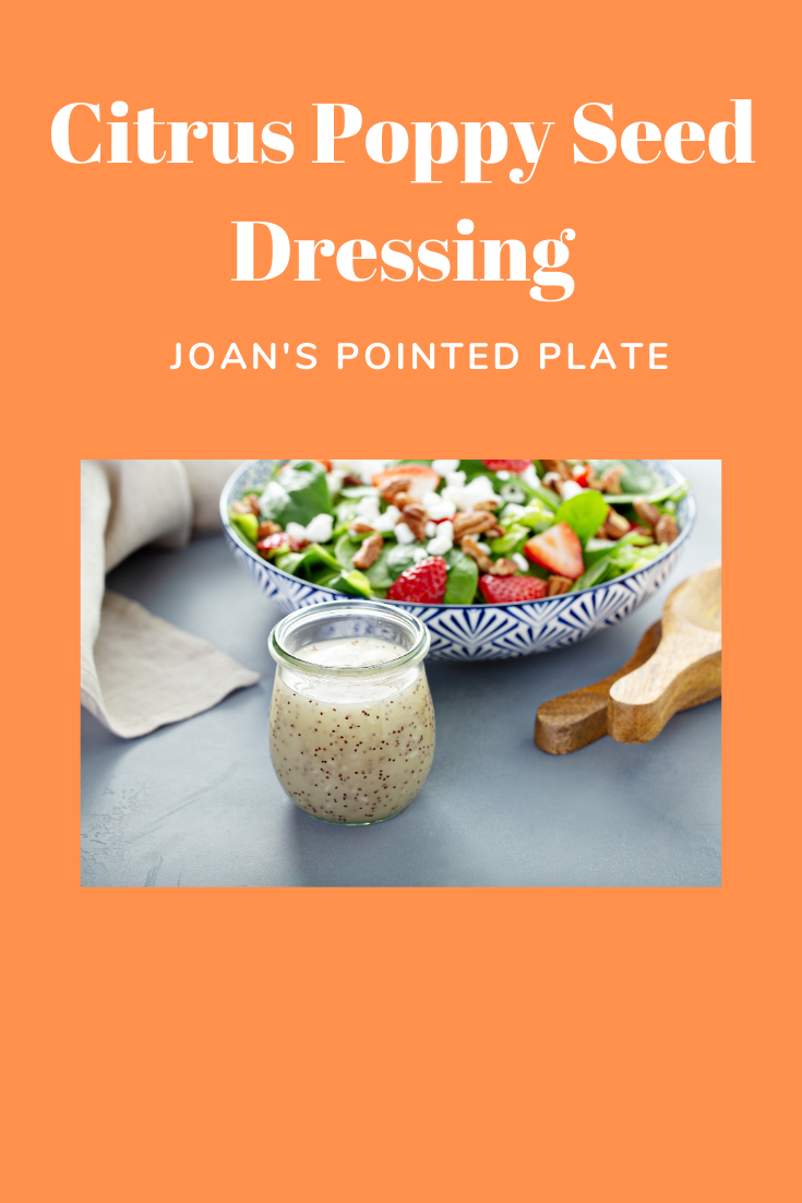 Citrus Poppy Seed Dressing / Uncategorized / By admin Joan Citrus Poppy Seed Dressing Makes 1 cup, serving size 1 Tbsp Print Recipe Pin Recipe Prep Time 5 minutes minsTotal Time 5 minutes mins Servings: 16Course: Salad DressingCuisine: salad dressing Ingredients Method Ingredients 2 Tbsp sugar2 Tbsp white wine vinegarpinch salt1/4 cup olive oil1 tsp poppy seeds1/3 cup fresh squeezed orange juice1 Tbsp orange zest Method Combine orange juice, oil, sugar, vinegar and salt in a bowl. Whisk until blended.Add poppy seeds and whisk to combine.