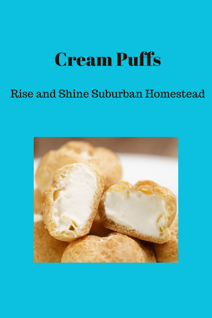 - You can now make the puffs in one of two ways - you can put the mixture in a piping bag and pipe your puffs or you can drop the dough by spoonfuls onto a greased or parchment lined baking sheet. Puffs should be abour 1.5 inches in diameter and about a 1/2 inch high. If you have "peaks" on the top of your dough, wet your finger and smooth them over. Bake at 400 for 35 minutes or until almost dry.