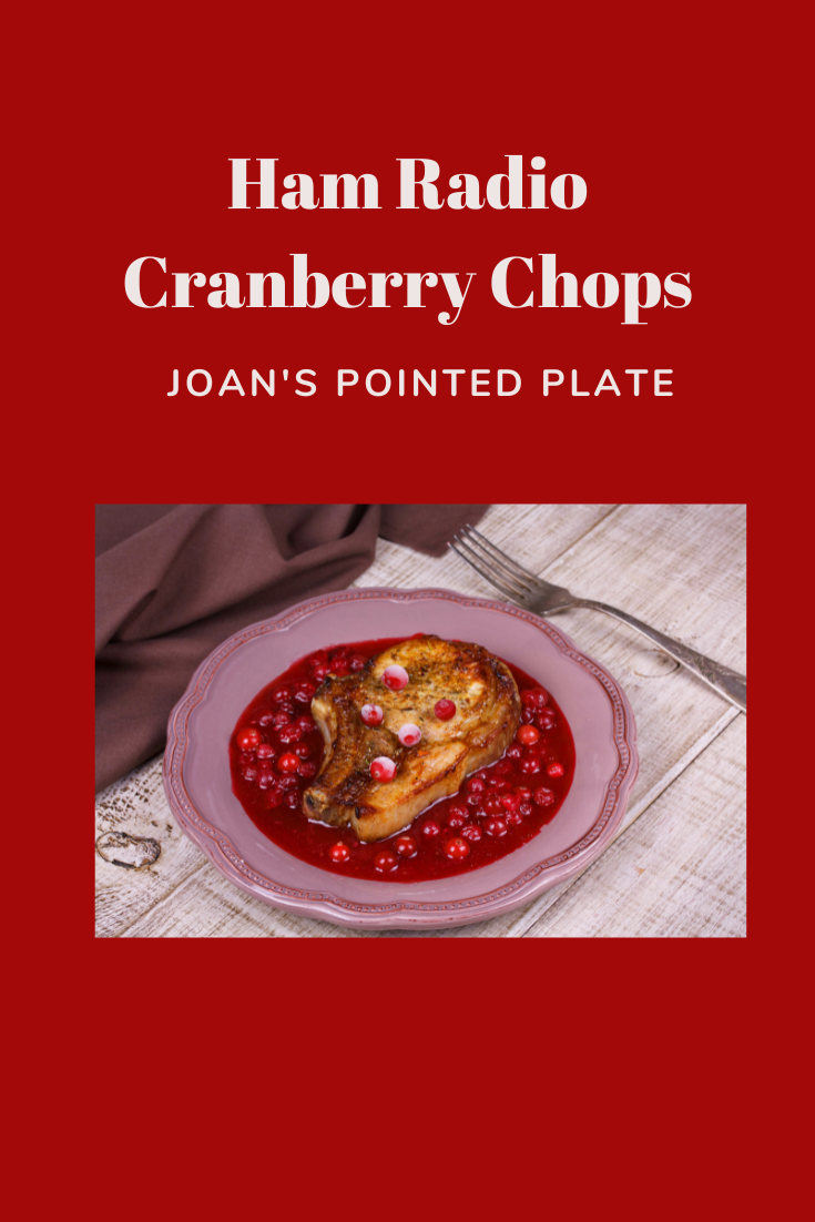 Ham Radio Cranberry Chops / Uncategorized / By admin Joan Ham Radio Cranberry Chops From The Gilligan's Island Cookbook Print Recipe Pin Recipe Prep Time 5 minutes minsCook Time 1 hour hrTotal Time 1 hour hr 5 minutes mins Servings: 6Course: Main CourseCuisine: Pork Ingredients Method Ingredients 6 4 oz pork chopsall purpose flour2 tsp olive or avocado oil1 16 oz can cranberry sauce1 tsp grated orange rind1/2 cup crushed pineapple, drained1/4 cup water Method Dredge the pork chops in flourIn a skillet, heat oil. Brown the pork chopsIn a bowl, mix remaining ingredients and pour the mixture over the chops in the skillet.Cover and simmer 45 minutes to an hour or until tender.