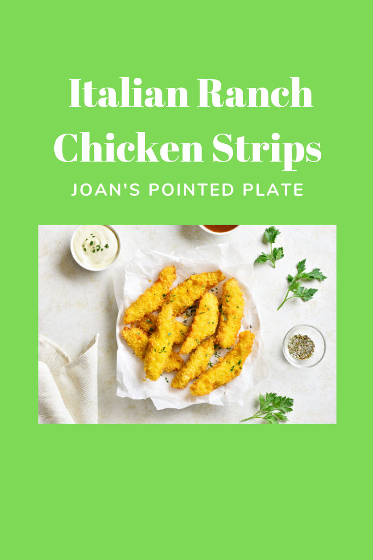 In another shallow bowl, combine dressing and water. (Here is the link to my homemade ranch dressing: https://joanspointedplate.com/ranch-dressing-and-dip-mix/ Dip chicken into dressing mixture, then coat with crumb mixture.