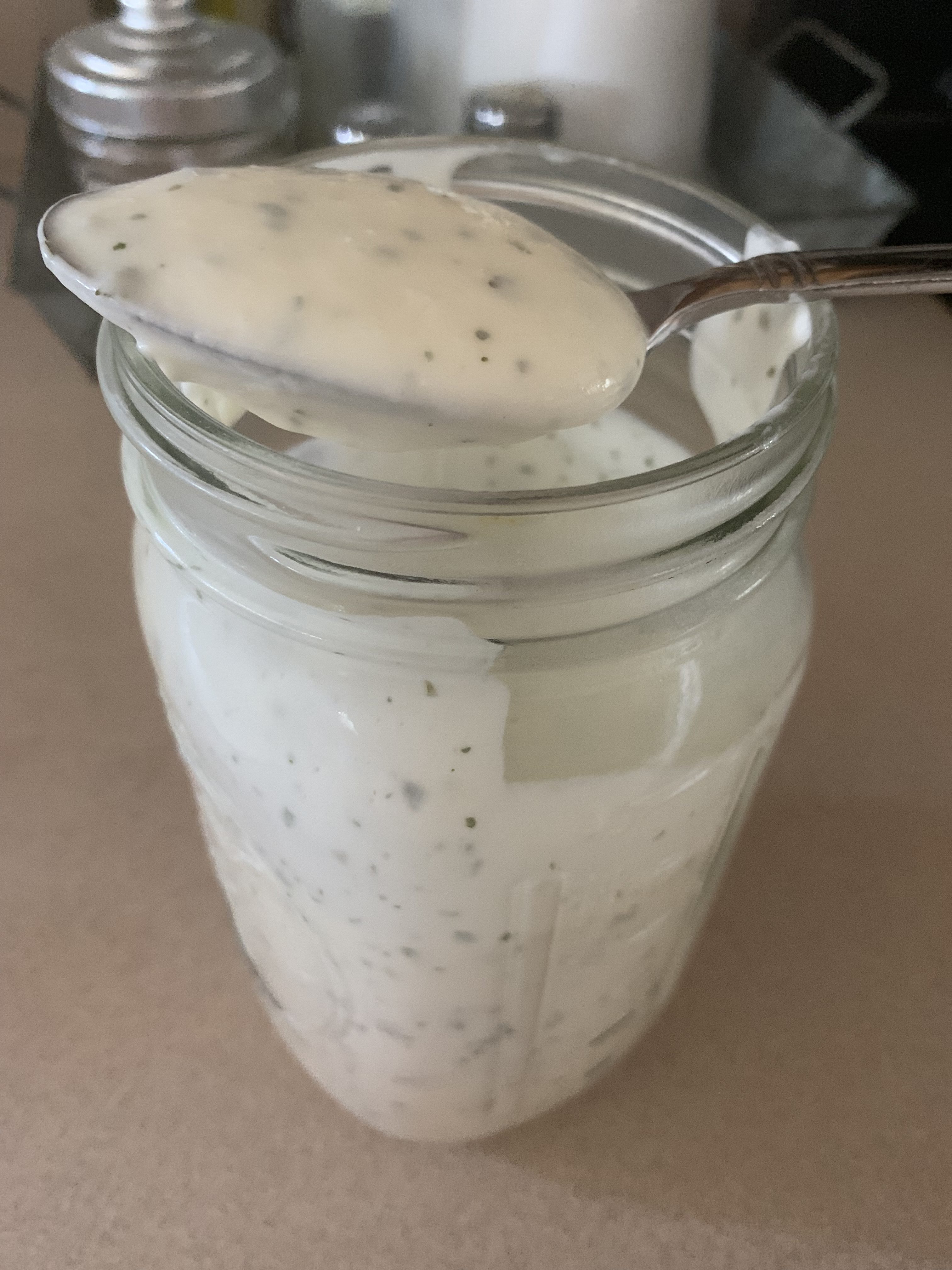 - In a large bowl, mix together 1/4 cup mayo, 1/4 cup Greek yogurt, 1/2 cup of buttermilk and 1 Tbsp Ranch Mix. Refrigerate for 1 hour. (can also sub greek yogurt for more mayo or sour cream)***to make your own buttermilk – take 1/2 cup of milk (I use 1%) and add 1 to 1 1/2 Tbsp of white vinegar to the milk. Let sit 5-10 minutes. *** I never buy buttermilk anymore!